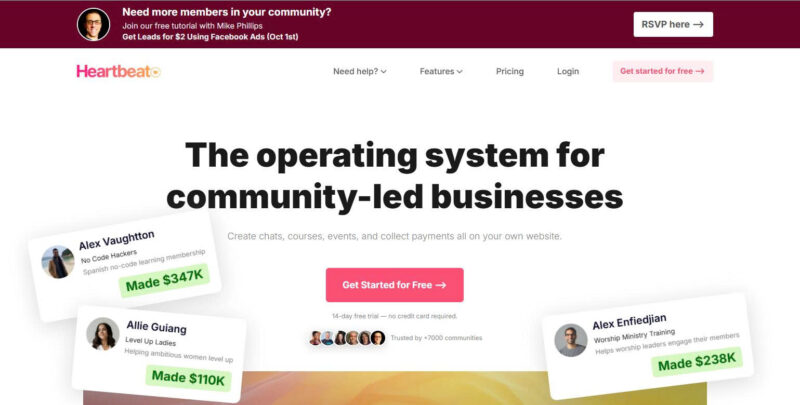 Heartbeat.chat là một nền tảng “tất cả trong một” dành cho creator, coach, startup hay doanh nghiệp muốn xây dựng và phát triển cộng đồng trực tuyến.